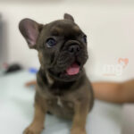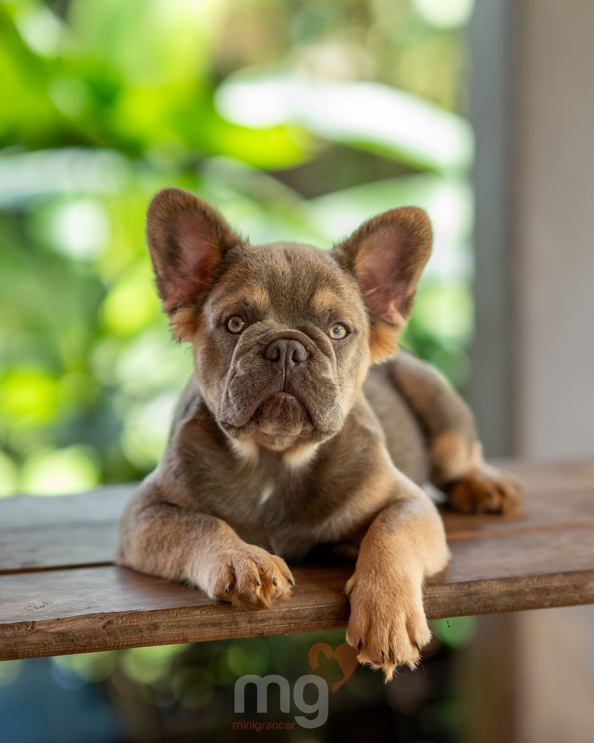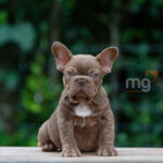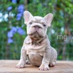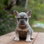 - Color Exclusivo: combina una base lila diluida —suave y perlada— con delicadas marcas trindle en tonos cálidos que aparecen de manera discreta sobre las extremidades y el contorno. Este contraste aporta profundidad y una apariencia única dentro del bulldog francés.
