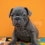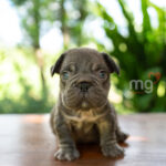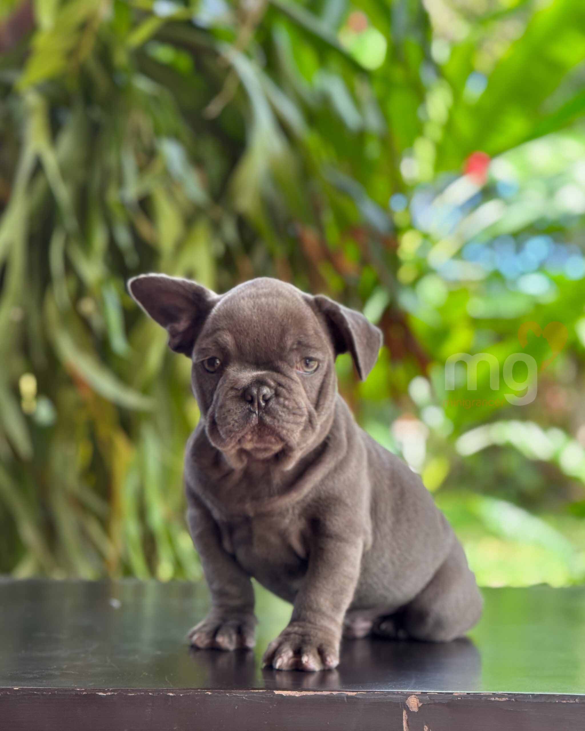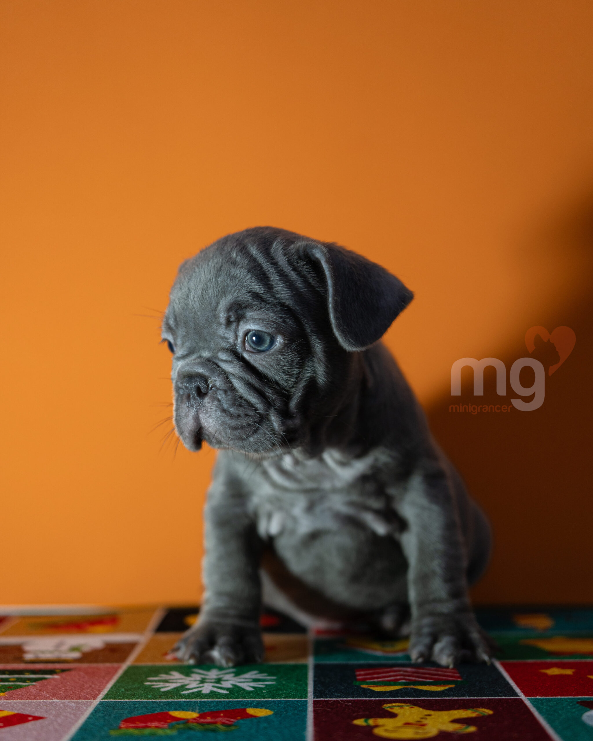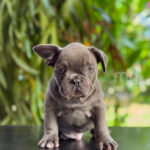 - Color Exclusivo: Pelaje Blue, de tono gris azulado uniforme que refleja suavidad y elegancia en cada movimiento. Su brillo metálico bajo la luz natural resalta la pureza de esta dilución genética, dando un aspecto sereno y distinguido. Un color clásico dentro de las líneas modernas del bulldog francés, apreciado por su equilibrio entre belleza, nobleza y expresión tierna.