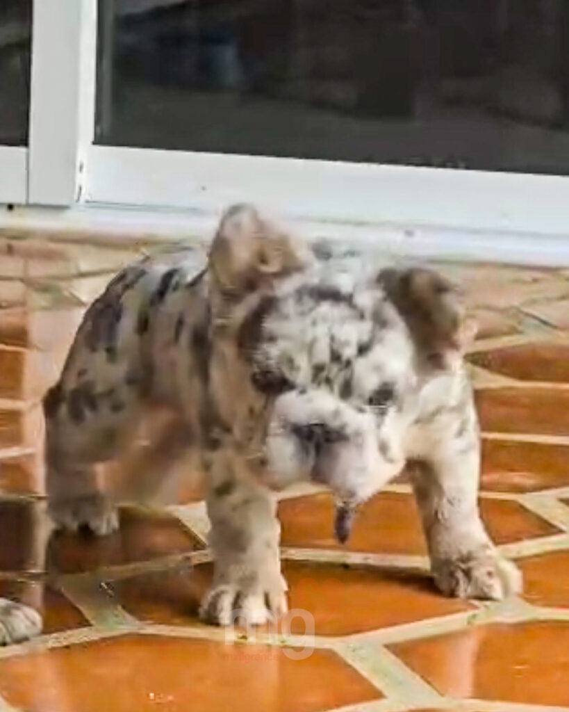 - Color Exclusivo: PPelaje blue merle, suave y esponjoso gracias a su genética fluffy, con un patrón único de manchas plateadas y grises que parecen pintadas a mano. Su Big Rope imponente resalta aún más su estructura compacta y poderosa, mientras que la mirada, intensa y expresiva, refleja la elegancia y rareza de este ejemplar extraordinario.