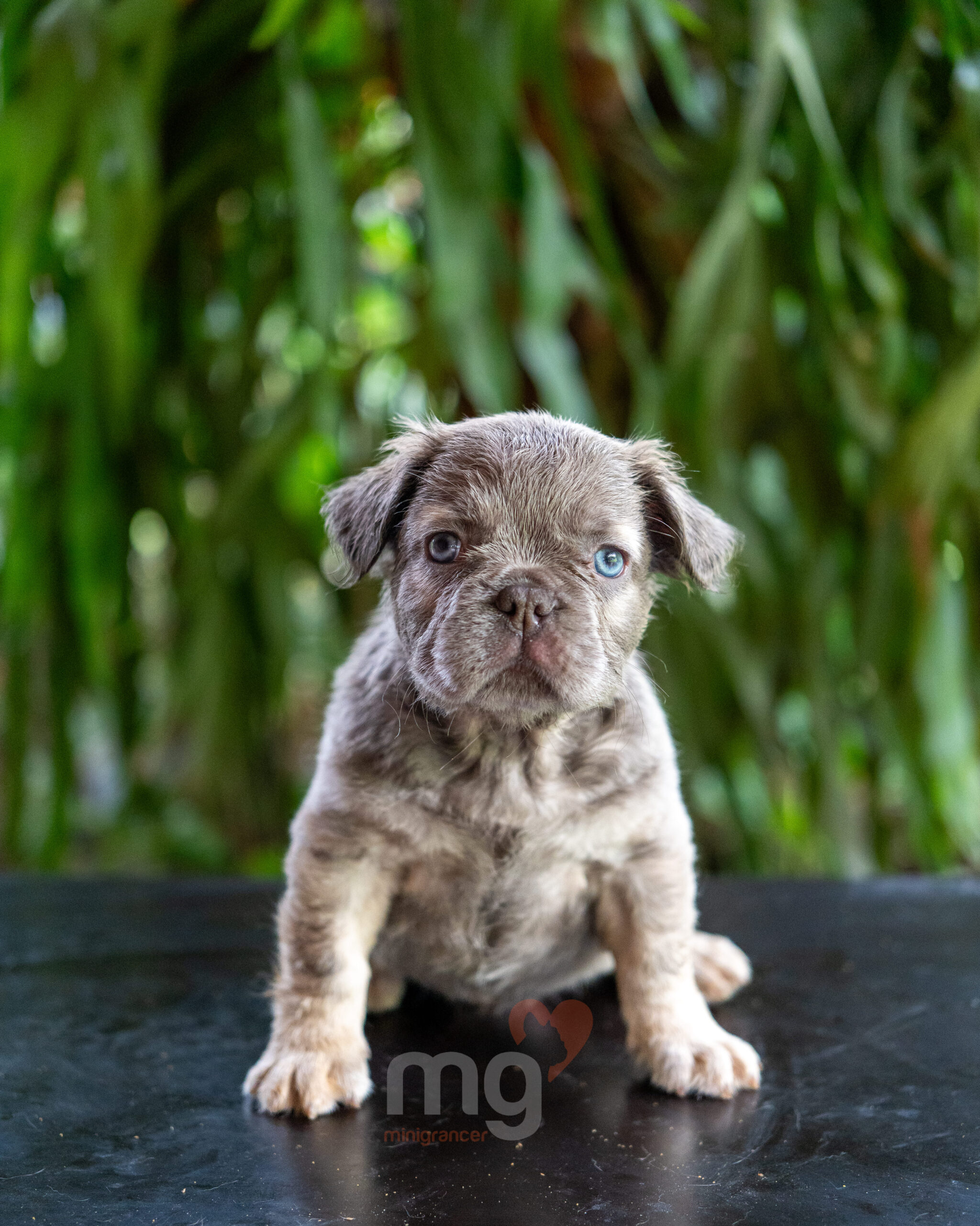 Hembra Bulldog Francés Blue Merle + Fluffy:
